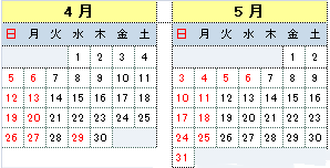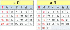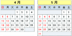 日曜、月曜、祝日、お盆、年末年始