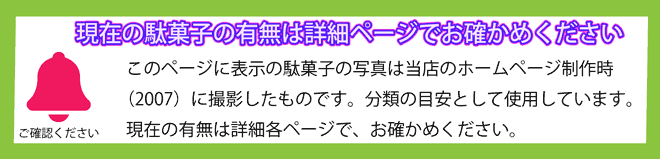 うまいぼう(チーズ、サラダ、メンタイ、エビマヨ、サラミ、たこ焼き、てりやき、コンポタ、カレーなど)、麩菓子、餅太郎、
