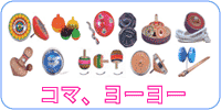鉄輪コマ、けしこま、塗りコマ、上州木こま、蛇コマ、木製逆立ちこま、空中コマ、ベーゴマ 各種、ベーゴマ用床、マジックヨーヨー、九州こま各種など